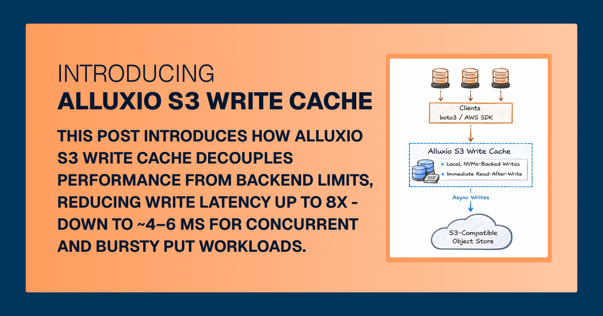 For write-heavy AI and analytics workloads, cloud object storage can become the primary bottleneck. This post introduces how Alluxio S3 Write Cache decouples performance from backend limits, reducing write latency up to 8X - down to ~4–6 ms for concurrent and bursty PUT workloads.
