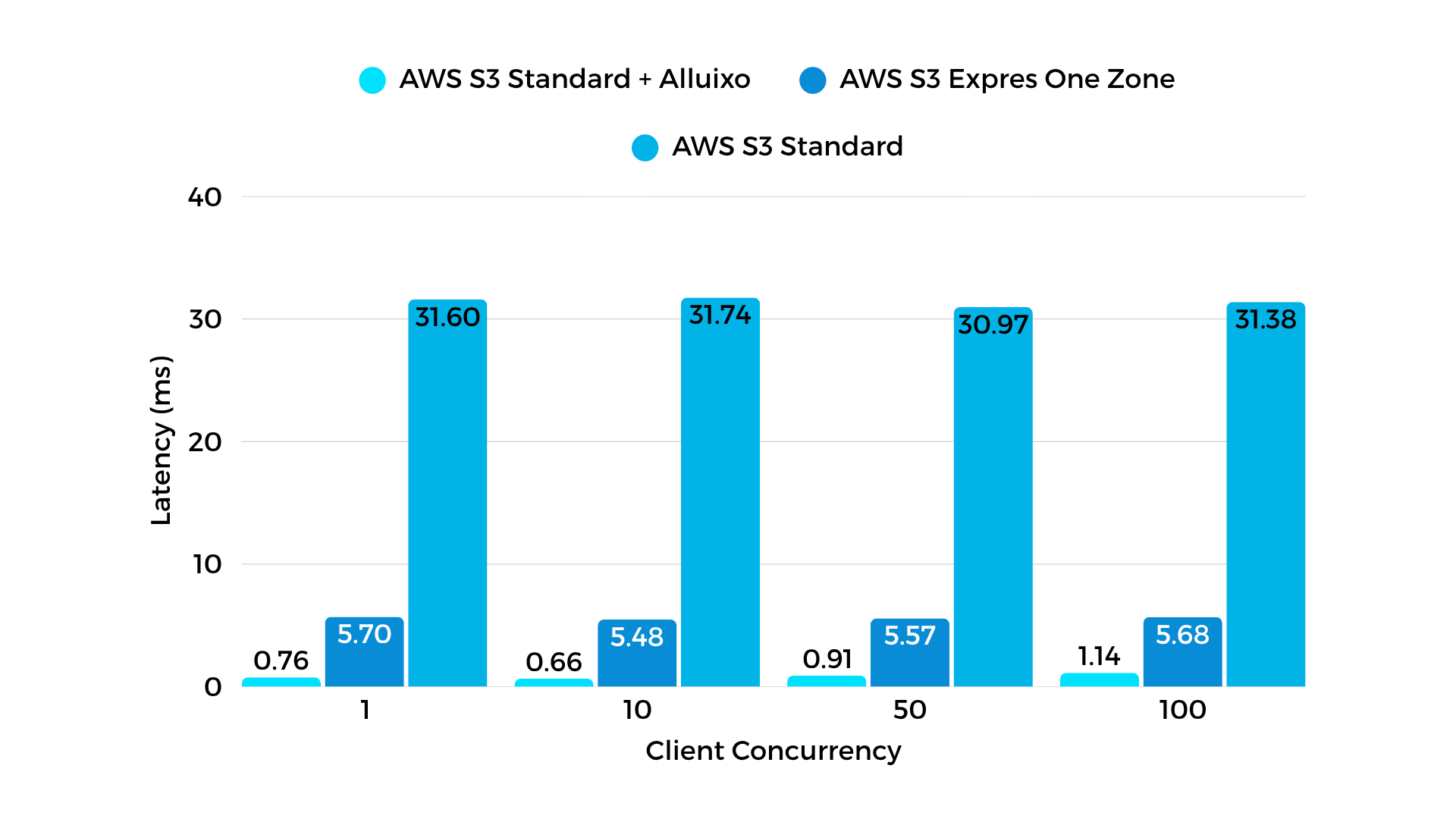 S3 standard buckets commonly deliver read latencies (Time-To-First-Byte, TTFB) in the 30–200 ms range, which is painful for real-time inference and transactional access.