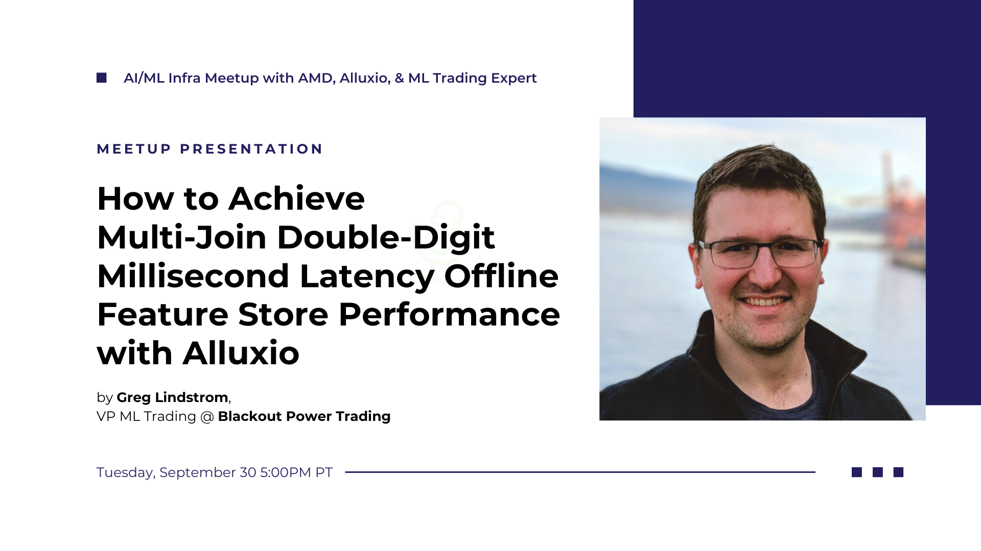 In this talk, Greg Lindstrom shared how Blackout Power Trading achieved double-digit millisecond offline feature store performance using Alluxio, a game-changer for real-time power trading where every millisecond counts. The 60x latency reduction for inference queries was particularly impressive.